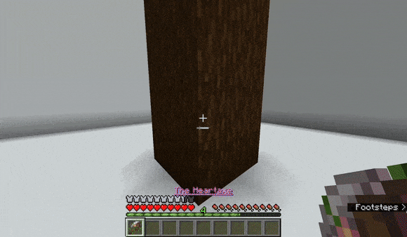 The axe does serve well, however, as a tool for chopping down large quantities of wood, as its ability—Lumberlust—gives the player the Haste effect when chopping logs. This effect lasts only for about 2 seconds, but at the top level of Haste IV, a Heartaxe enchanted with Efficiency V can effectively insta-mine logs. This ability also has no cooldown period.