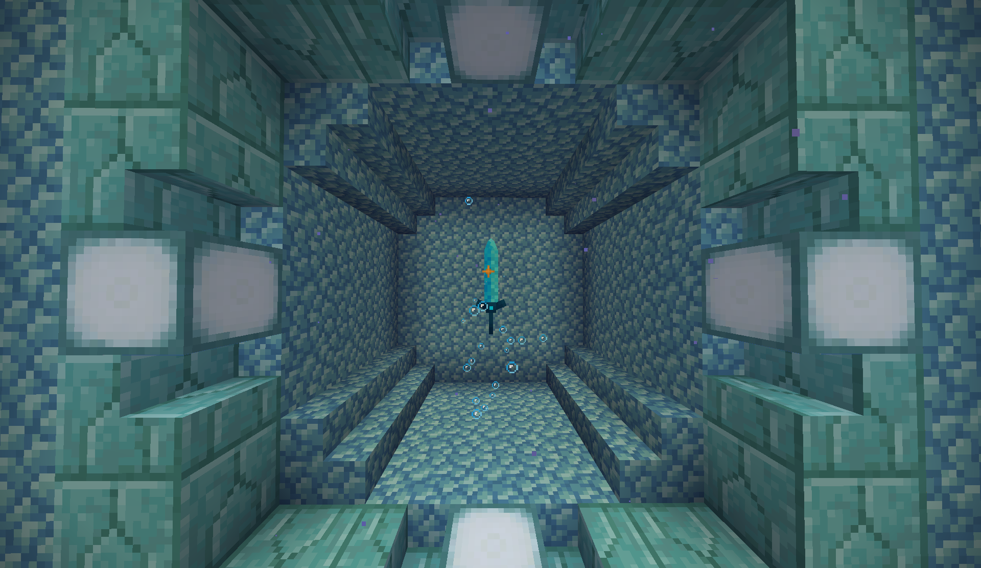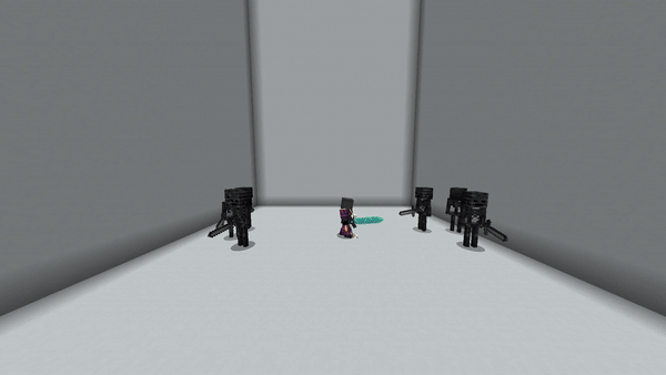 The Moonlight Sanctum makes use of Elder Guardians ("Dahrkin Negators"), which, as in vanilla Minecraft, curse the player with a mining fatigue status effect. The player must defeat the three Elder Guardians in the sanctum, each housed in a separate tower within the flooded cavern. At this point, a button on a platform near one of the walls can be pressed to lift the magic ward, removing the mining fatigue effect and triggering a dialogue line: