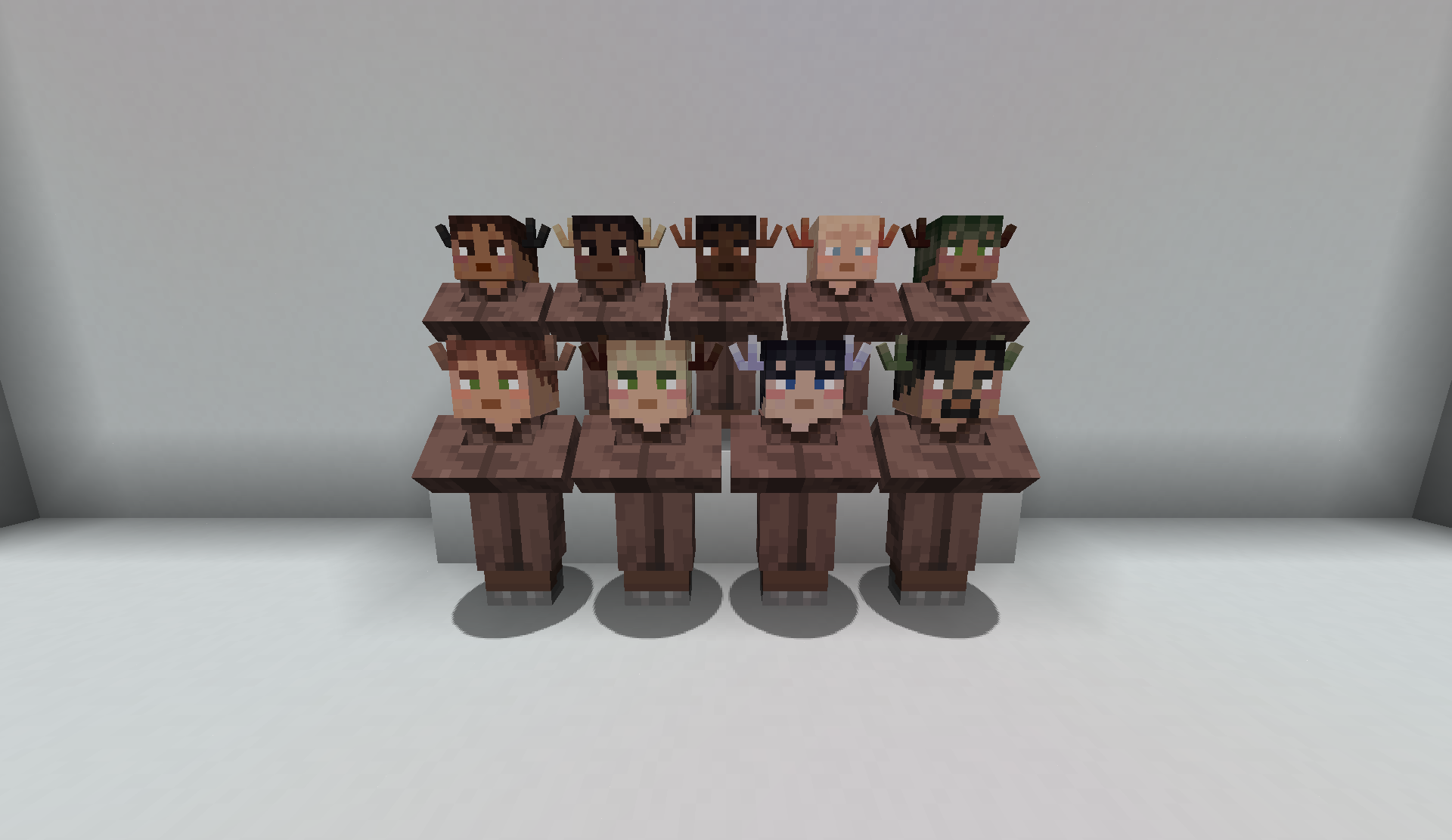 Drehmari are the predominant humanoid race on Drehmal, appearing as normal humans with antlers and horns. Most Drehmari are represented by villagers with special skins in-game, however supposed hostile Drehmari are represented by other mobs.