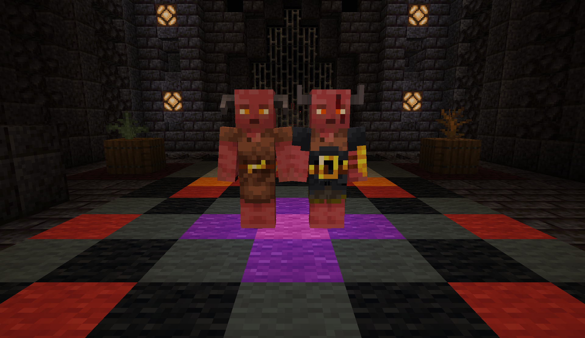 Replacing vanilla Minecraft Piglins, Maelmari appear as humanoid creatures with bright red skin and brown/black horns. They follow vanilla Piglin mechanics, meaning that regular Maelmari are hostile toward the player by default, but can be pacified with gold, while Maelmari Brutes are always hostile.