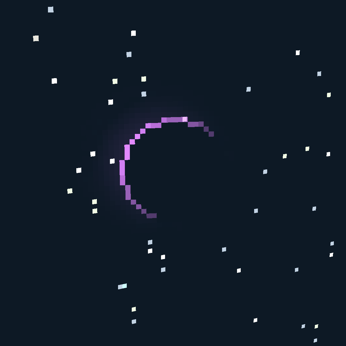 Lo'Veruhkt can be seen in-game during and after the 75% completion event on the Aphelion. If the player is in the Space or Lo'Dahr dimensions, the moon can be seen toward the bottom of the skybox. It appears as a thin, purple crescent, visible at all times of day. It follows the same clockwise, 16-day orbital pattern as Loruhn, but directly opposite that moon. Whereas Loruhn is in the north-northeastern sky on Day 1, Lo'Veruhkt starts out in the south-southwest.