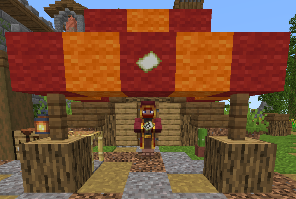 Adventuring Merchants are special merchants, one of which can be found in each official town/city (with the exception of Rhaveloth). An Adventuring Merchant's stall or building is marked by red and orange wool awning. Each of them sells a map of the town's region, a map of Drehmal that displays all official towns on the mainland, a bundle, a runic vessel (shulker box), and another special item that is unique to the merchant, and usually is associated with their area.