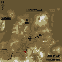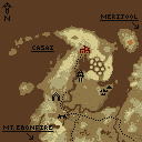 Regional maps show the region surrounding the Adventuring Merchant's town, as well as parts of bordering regions. Marked on the map are several simple symbols that denote points of interest.