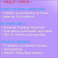 -70% of facility inaccessible.GRAVITON CRUCIBLE: