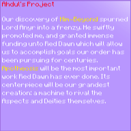 Our discovery of Him-Beyond spurned Lord Anyr into a frenzy. He swiftly promoted me, and granted immense funding unto Red Dawn which will allow us to accomplish goals our order has been pursuing for centuries. Apotheosis will be the most important work Red Dawn has ever done. Its centerpiece will be our grandest creation: a machine to rival the Aspects and Deities themselves.
