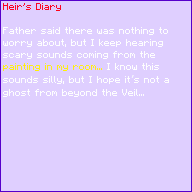 Father said there was nothing to worry about, but I keep hearing scary sounds coming from the painting in my room… I know this sounds silly, but I hope it’s not a ghost from beyond the Veil…
