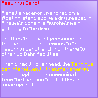 Shuttles transport personnel from the Aphelion and Terminus to the Resupply Depot, and from there to other Lo’Dahr facilities.