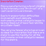 The very low temperature has proven so ideal for inscription that there are plans to use this facility for all the most complex primal catalysts needed for the empire.