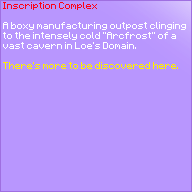 A boxy manufacturing outpost clinging to the intensely cold “Arcfrost” of a vast cavern in Loe's Domain.