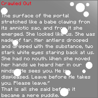 This holotext, found in the Primary Energy Collection Facility, describes a mangled Drehmari emerging from the portal in the facility, giving the workers a cryptic warning before dissolving.