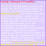 This holotext, one of two found in a room near the top of the Resupply Depot, discusses the experience of Avsohm's initial landing on Lo'Dahr, piloted by Verpyne.