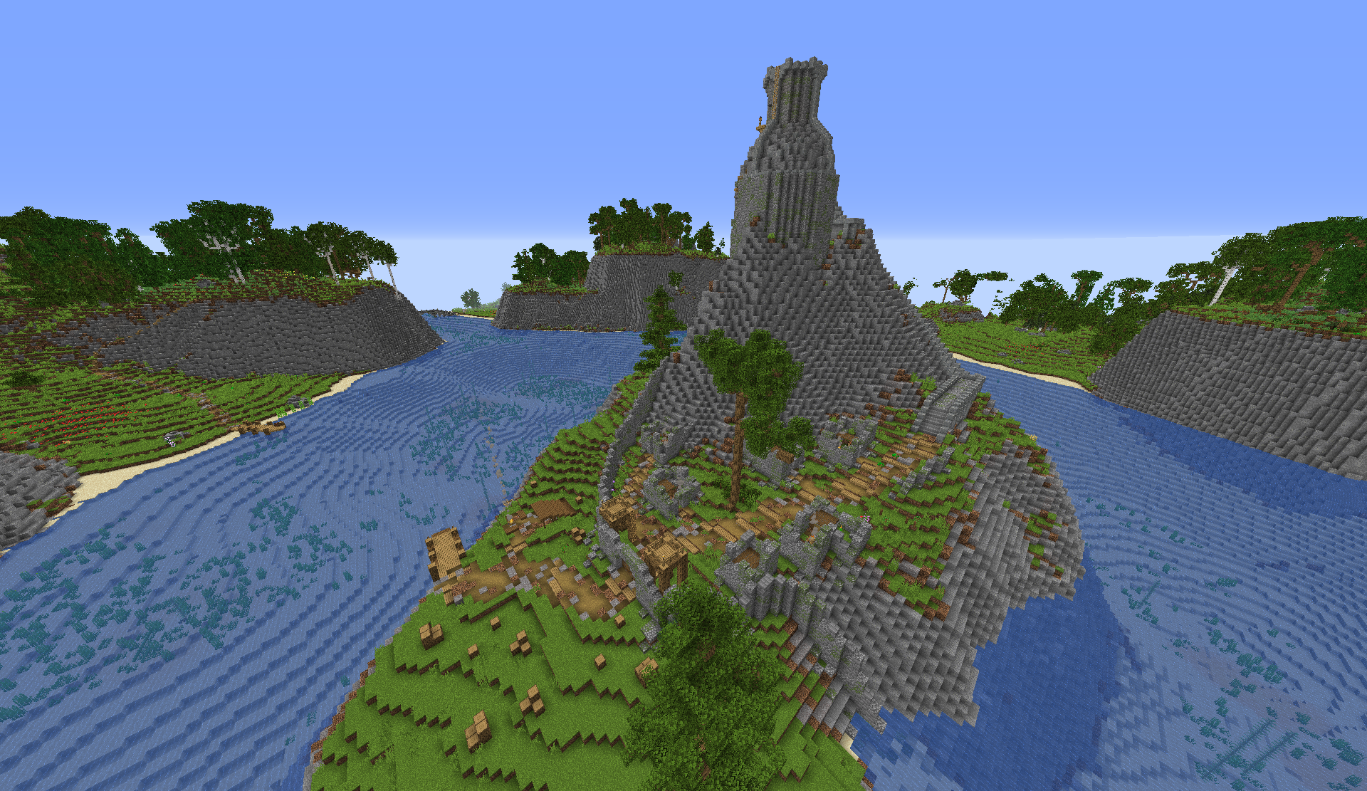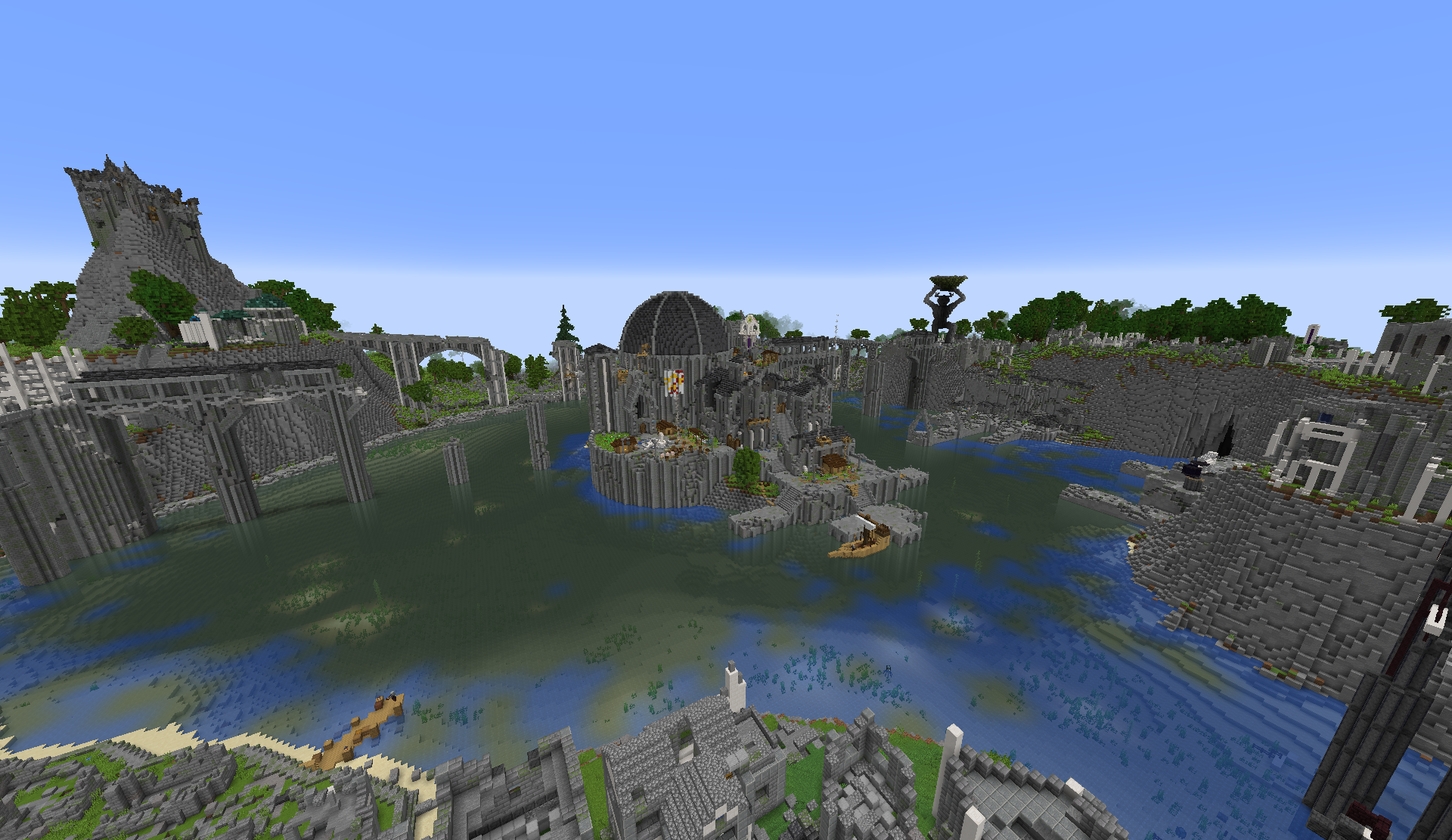 A ruined, prismarine-roofed structure in this area reminiscent of the Kiln may have been a temple to Virtuo. Directly opposite this building, a quartz pyramid holds the Anyr Priest's Tunic artifact.