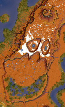 When viewed on a map, the above landform in Casai's western mountain range looks something like a smiley face, somewhat reminiscent of a donkey. Per co-creator Keeko100, this face may be called either "Grubby" or "Schlubby".